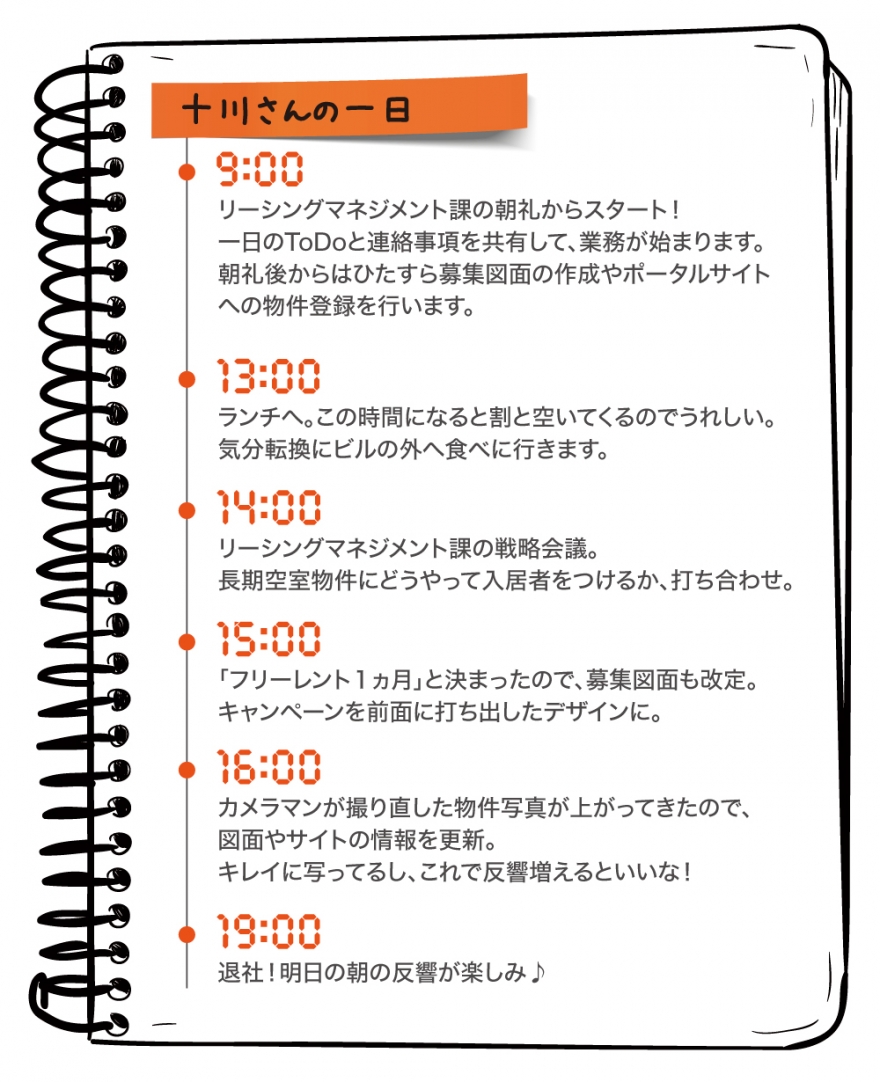 入居希望者さん、仲介業者さんからより多くの反響を得るために、どのような募集図面にしたら良いかを常に考える十川さん。