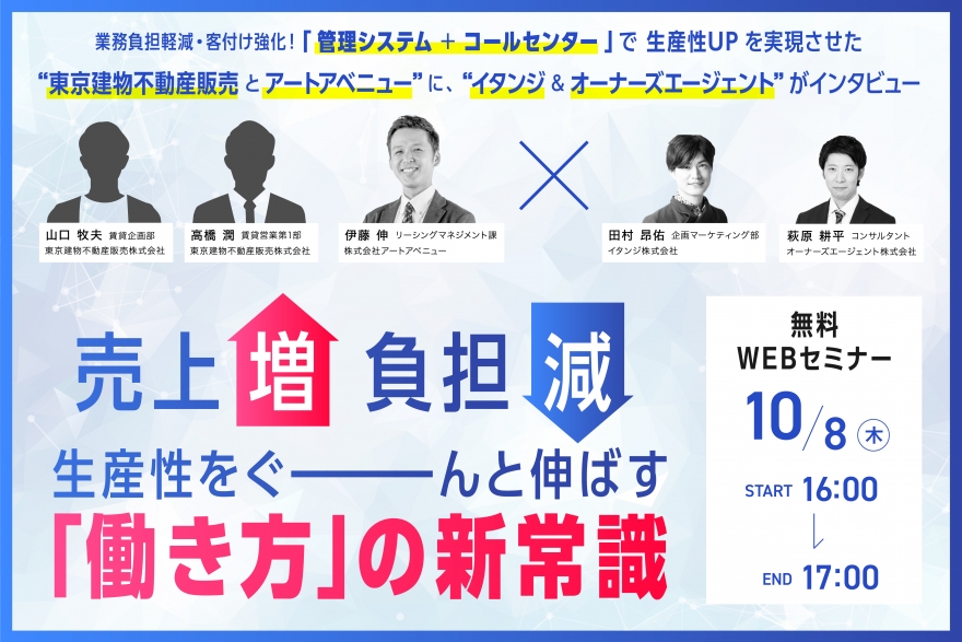 不動産テックベンチャー企業「イタンジ」と、累計600社以上の不動産会社を支援してきた「オーナーズエージェント」のコラボセミナーが発足!