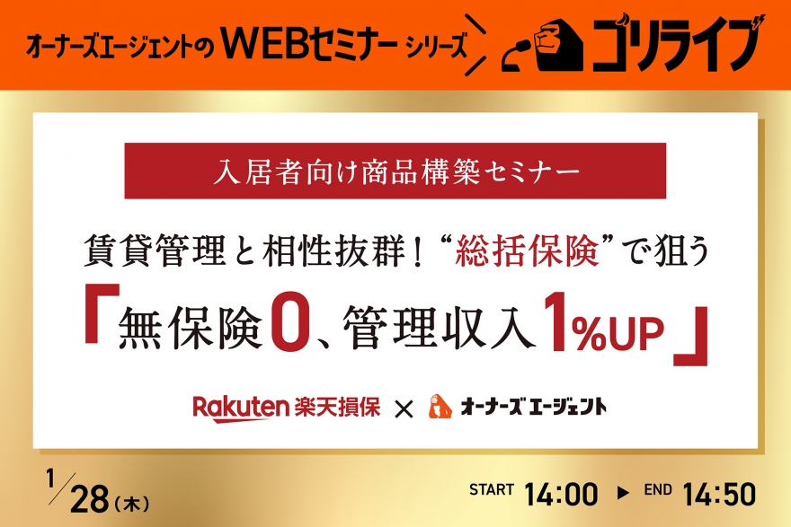 【ゴリライブ】楽天損保×オーナーズエージェント「入居者向け商品構築」セミナー(無料・WEB開催)