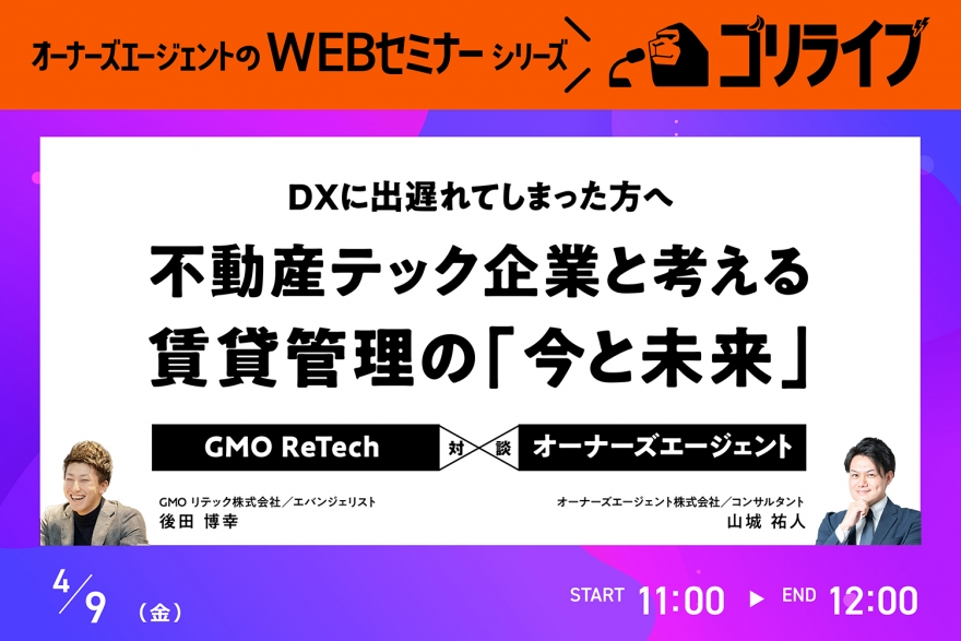 【ゴリライブ】GMO ReTech×オーナーズエージェント対談セミナー「不動産テックで急変! 賃貸管理の今と未来」