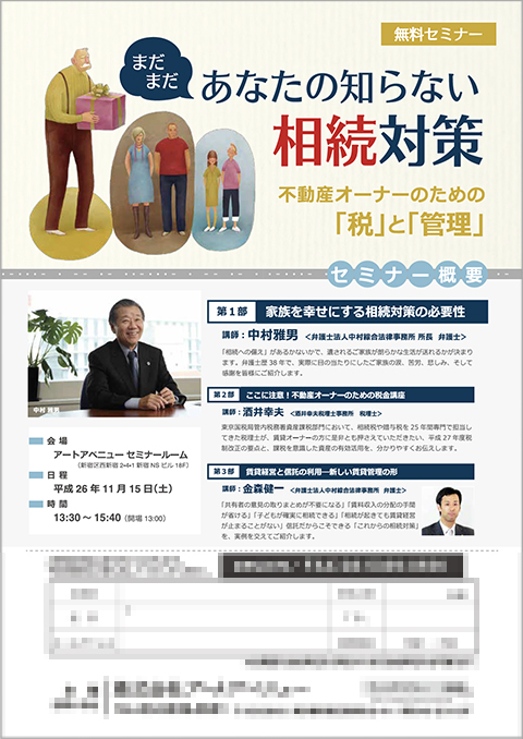 東京国税局管内税務署資産課税部門において、相続税や贈与税を25 年間専門で担当してきた税理士が、賃貸オーナーの方に是非とも押さえていただきたい平成27年度税制改正の要点と、課税を意識した資産の有効活用を、分かりやすくお伝えします。