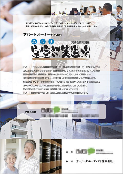 しかし、もし方法が分からない、講演のできる人材がいない、とお困りなのであれば、是非オーナーズエージェントのセミナー支援をご活用ください。